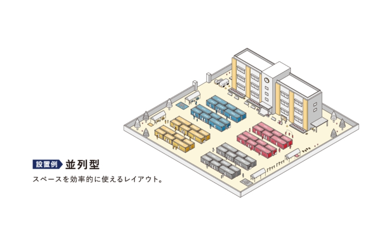 全国各地の自治体や企業に1台ずつでも保有していただくことで、被災地へ短時間に大量の住宅を供給することが可能に。