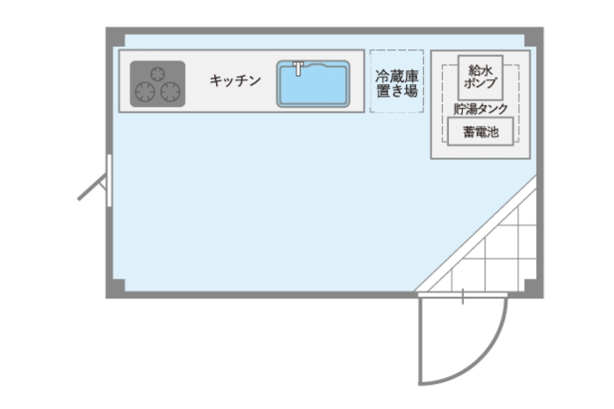 電気・水道・ガス管が使えない状況でも生活開始が可能。