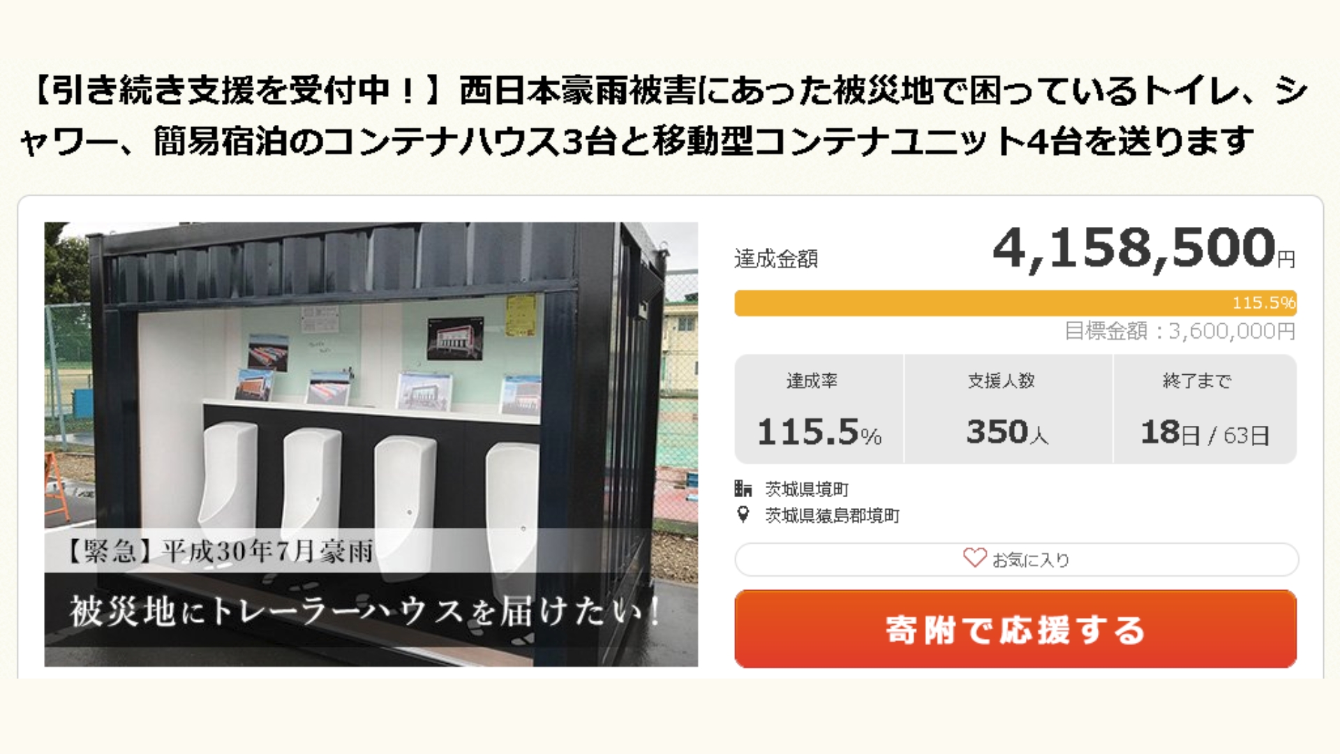 コンテナハウスを境町が東京三鷹市へ無償で貸し出し