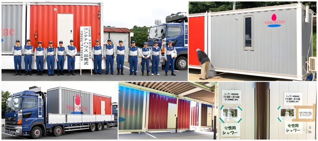 避難所のプライバシー問題・衛生課題を解決する、迅速設置・清潔・個室空間のコンテナ/トレーラー型ユニット。